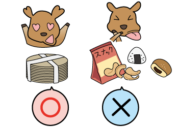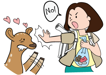 鹿せんべい以外の食べ物(お菓子、パン、野菜など)を与えるとシカが病気になったり、人間の食べ物の味を覚えたりする恐れがあります。