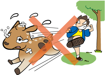 シカは、国の天然記念物です。たたいたり、追いかけたりしないでください。