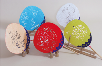奈良団扇(ならうちわ)は奈良時代に骨太な竹骨に紙を貼り渋を塗っただけの渋団扇(しぶうちわ)から始まったと言われています。後に透かし彫りが施され、今では天平文様や風物の優雅な透かし文様が特徴の県の伝統的工芸品です。