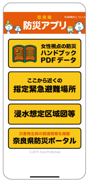 最新の防災情報や近くの指定緊急避難場所、防災ハンドブックなどが確認できる「奈良県防災アプリ」をダウンロードしましょう。