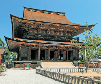 吉野山のシンボルの金峯山寺は飛鳥時代に開かれた修験道の総本山。木造建築の蔵王堂には、高さ約7mの本尊の蔵王権現が祭られています。