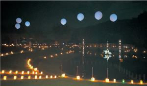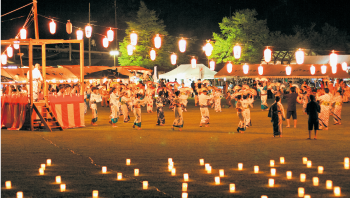 夜のパークでは約4,000個のあんどんに明かりがともり、幻想的な雰囲気が楽しめます。