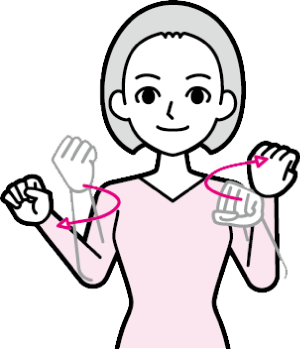 逆向きに立てた両手拳の向きをかえながら前後に移動する
