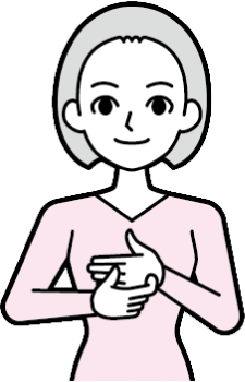 指先を右へ向けた左手の甲側下部に右手2指をつける