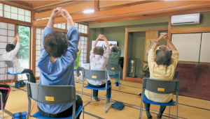 住民主体で行う「いきいき百歳体操」(大淀町)