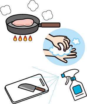 食肉を取り扱った後は十分に手を洗ってから他の食品を取り扱いましょう!