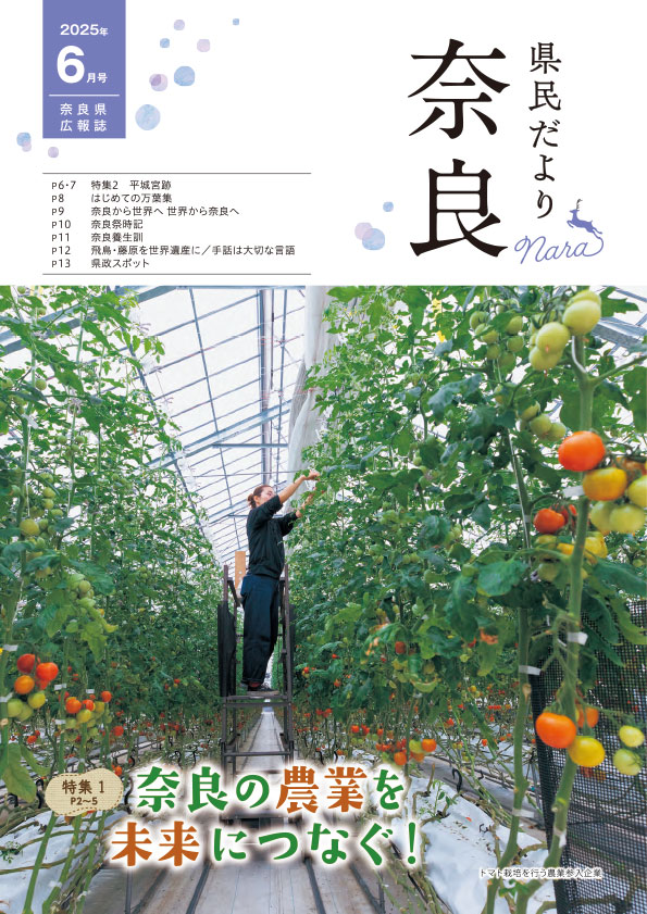 | 2~5 | 特集1 | 奈良の農業を未来につなぐ! | 特集1(PDF:3,089KB) | 特集1(MP3:10,751KB) |