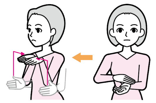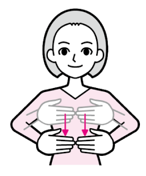 両手掌を両胸にあて、撫で下ろす
