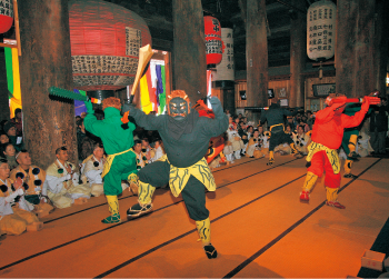 「福は内、鬼も内」と唱える鬼の調伏式は、全国でも極めて珍しい節分行事です。全国から追われてきた鬼を迎え入れ、経典の功徳や法力で鬼達を仏道に入らしめます。