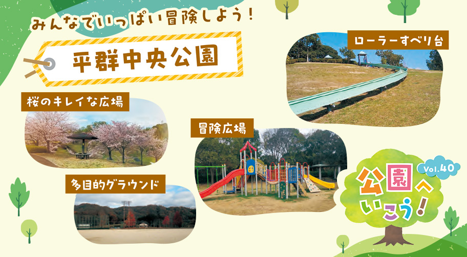 桜やイチョウなど四季折々の景色を楽しむことができ、長いローラーすべり台がある冒険広場や、芝生が広がる歴史広場、ジョギングに最適な園路、歴史に触れられる古墳など、さまざまな体験ができます。