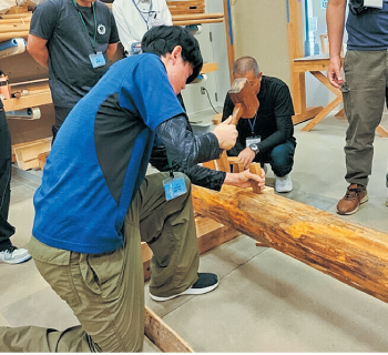 文化財修理の見学体験、宮大工からの技術指導、最高級ブランド木材の吉野スギ・ヒノキを使った実習など、本物を見て体験し、本物の人と接し、本物で実践しながら学びます。