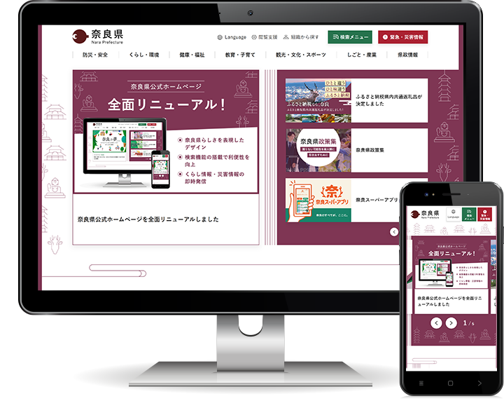 奈良県公式ホームページは、本県の様々な情報を広く・積極的に発信し、皆様にご利用いただいてまいりました。