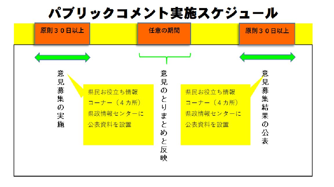 県の基本的な施策に関する計画等を立案する過程において、その計画等の案の趣旨、内容その他必要な事項を県民等に公表し、これらについて提出された県民等の意見、情報及び専門的な知識を考慮して意思決定を行う手続
