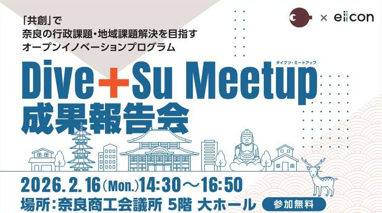 「共創」で奈良の行政課題・地域課題を解決するオープンイノベーションプログラム、Dive+Su Meetup(ダイブツ・ミートアップ)の成果報告会を開催します!