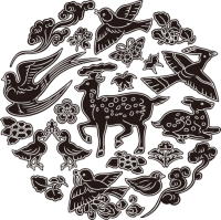 ロゴタイプは、奈良時代に確立した書体である「楷書」をベースにし、シンボルマークは、正倉院の宝物に描かれた動植物を円形に配置。円形は、奈良時代から国家的にも重宝されたと言われる陰陽道の象徴、月と太陽の形です。