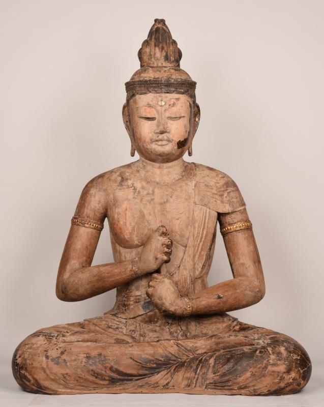 東南院多宝塔の本尊として祀られる金剛界大日如来像。温和な顔立ちや均整のとれたプロポーション、浅く整えられた衣の襞など、平安時代後期の特徴が認められます。