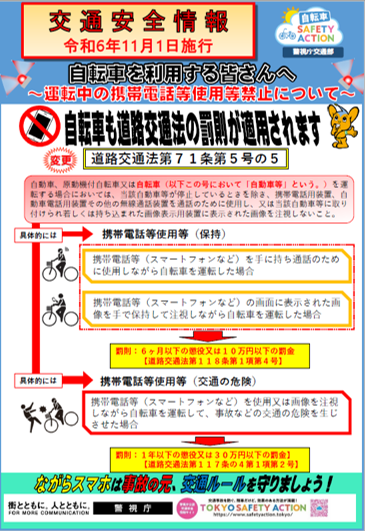 令和6年11月1日から自転車の危険な運転に対する罰則が新設されました
