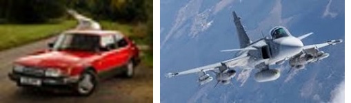 左:SAAB900 turbo (YM Works.comより) 右:SAAB 39グリペン戦闘機