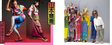 左:山本寛斎「スケッチャーズ」ポスター 右:三宅一生(Esquire.comより)