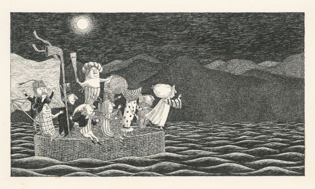 『狂瀾怒濤:あるいは、ブラックドール騒動』1986年 挿絵・原画 ペン、インク、紙 ©2022The Edward Gorey Charitable Trust