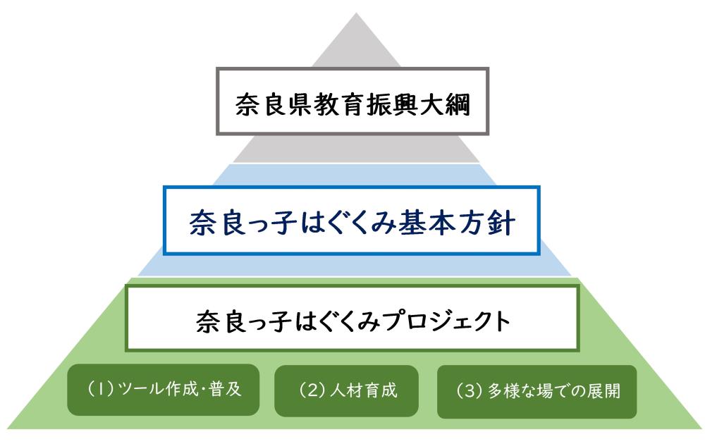 また、県では、保護者、保育者、また地域で、就学前教育に関わるすべての人が、共通の意識を持って子どもをはぐくんでいくための視点や環境づくりに関するガイドラインとして、「奈良っ子はぐくみ基本方針」を定めました。(令和4年3月策定)