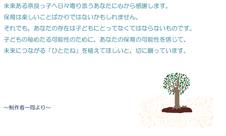 日常の保育の実践に役立つ「奈良っ子はぐくみワークブック『ひとたね』」を制作しました。