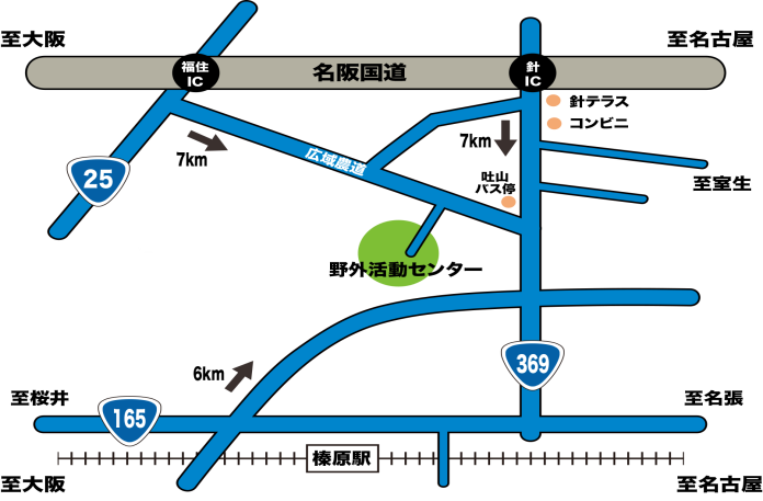 名阪国道 福住インター・針インターから南へ約7km。