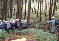実際に森の中に入って天然林と人工林の違いや放置林と手入れされた森を見比べ、森林のめぐみとはたらきについて学ぶことができます。