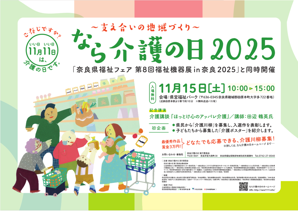 これらを踏まえ、県では、行政・専門職団体・企業などによる実行委員会を構成し、啓発イベント「なら介護の日2025」を開催します。