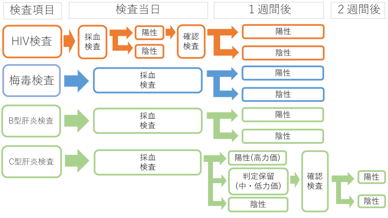 梅毒とB型肝炎、C型肝炎は 検査実施日から1週間後の水曜日 |