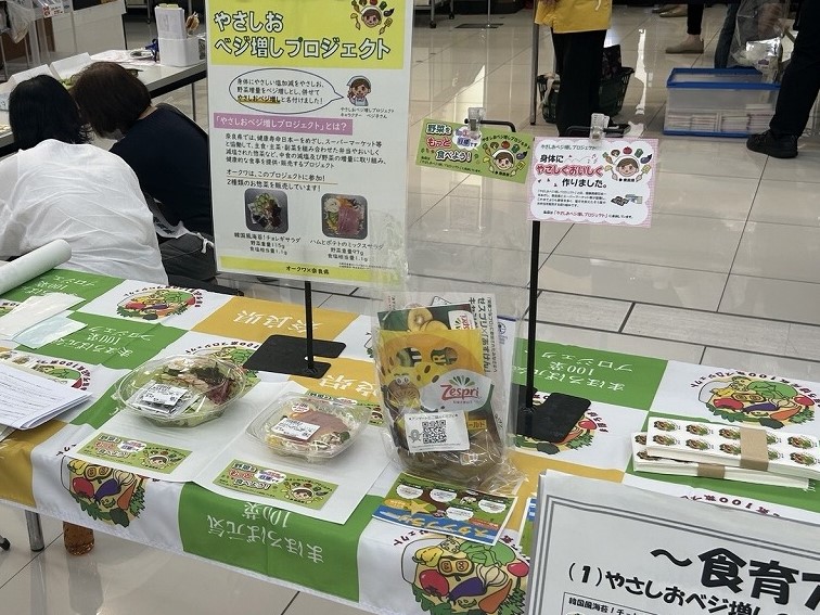 令和7年8月29日にオークワ葛城忍海店にて、葛城市健康増進課と中和保健所の共催で「やさしおベジ増しイベント」を実施しました!