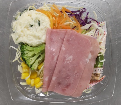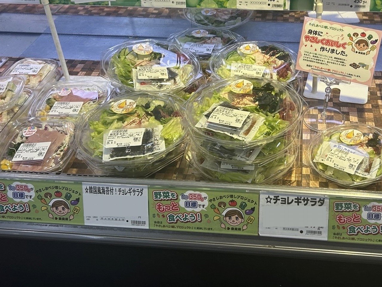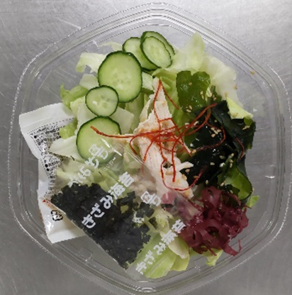 *左から「韓国風海苔!チョレギサラダ」、「ハムとポテトのミックスサラダ」