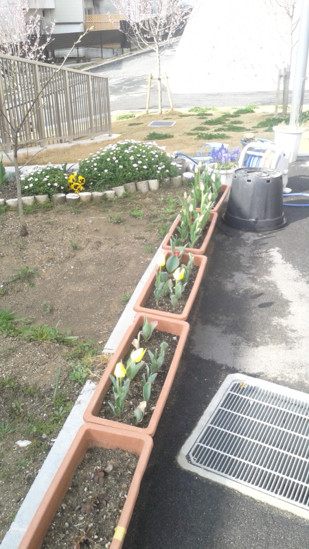 さて、今年は春の訪れが早く、昨年植樹した桜とチューリップ等が咲いてきています。