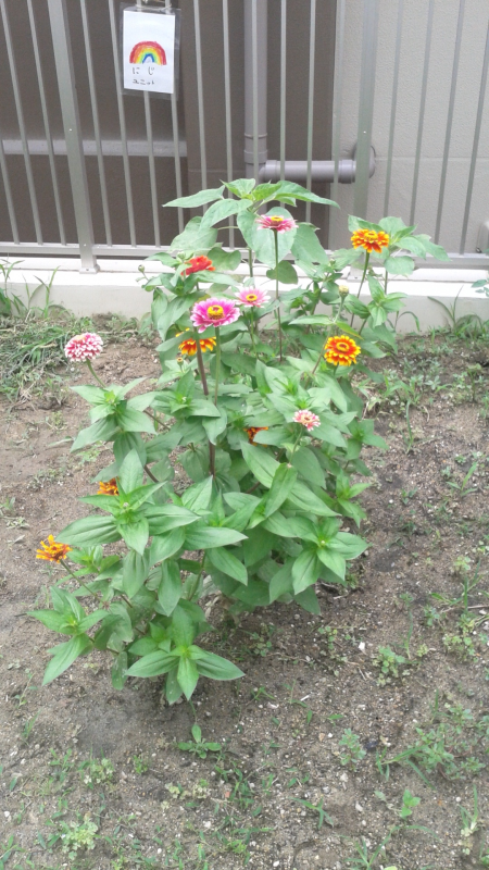 遅ればせながら、学園ではヒマワリが大輪の花を咲かせました。