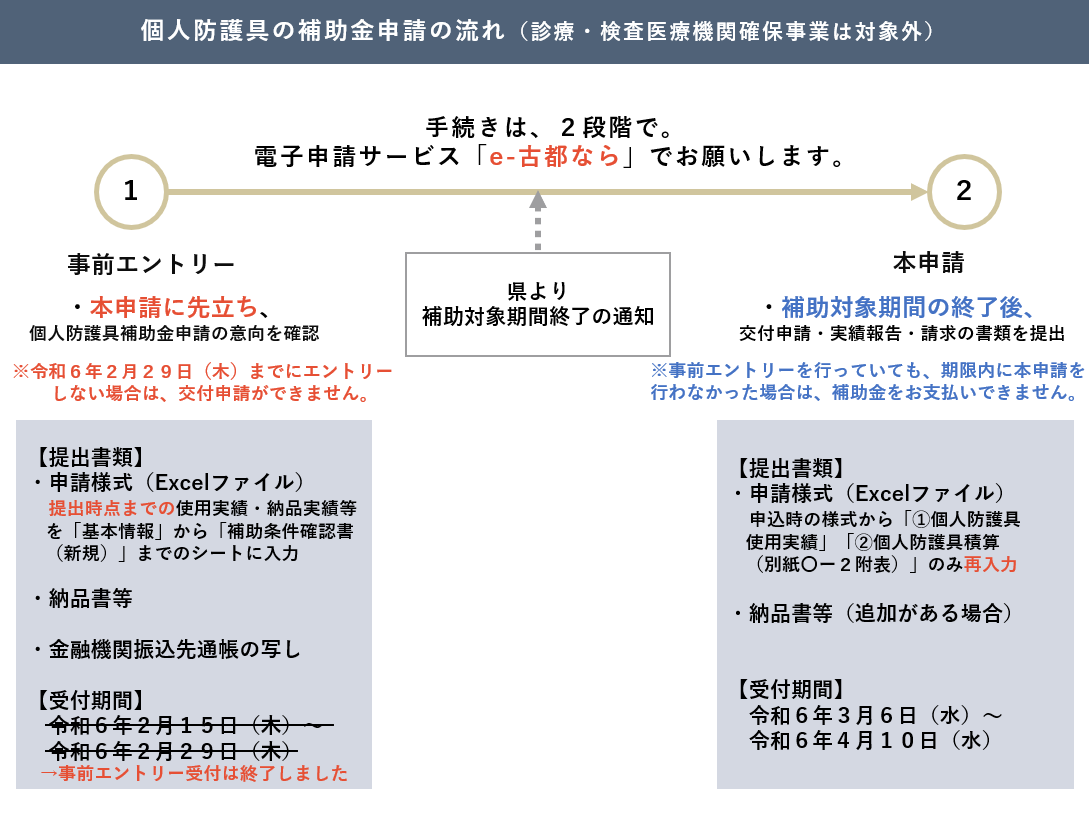 奈良県電子自治体共同運営システム電子サービス(e-古都なら)により事前エントリー及び本申請をお願いします。