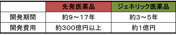 有効成分を開発しない分、開発費用が安く済むため、価格が安く設定されています。