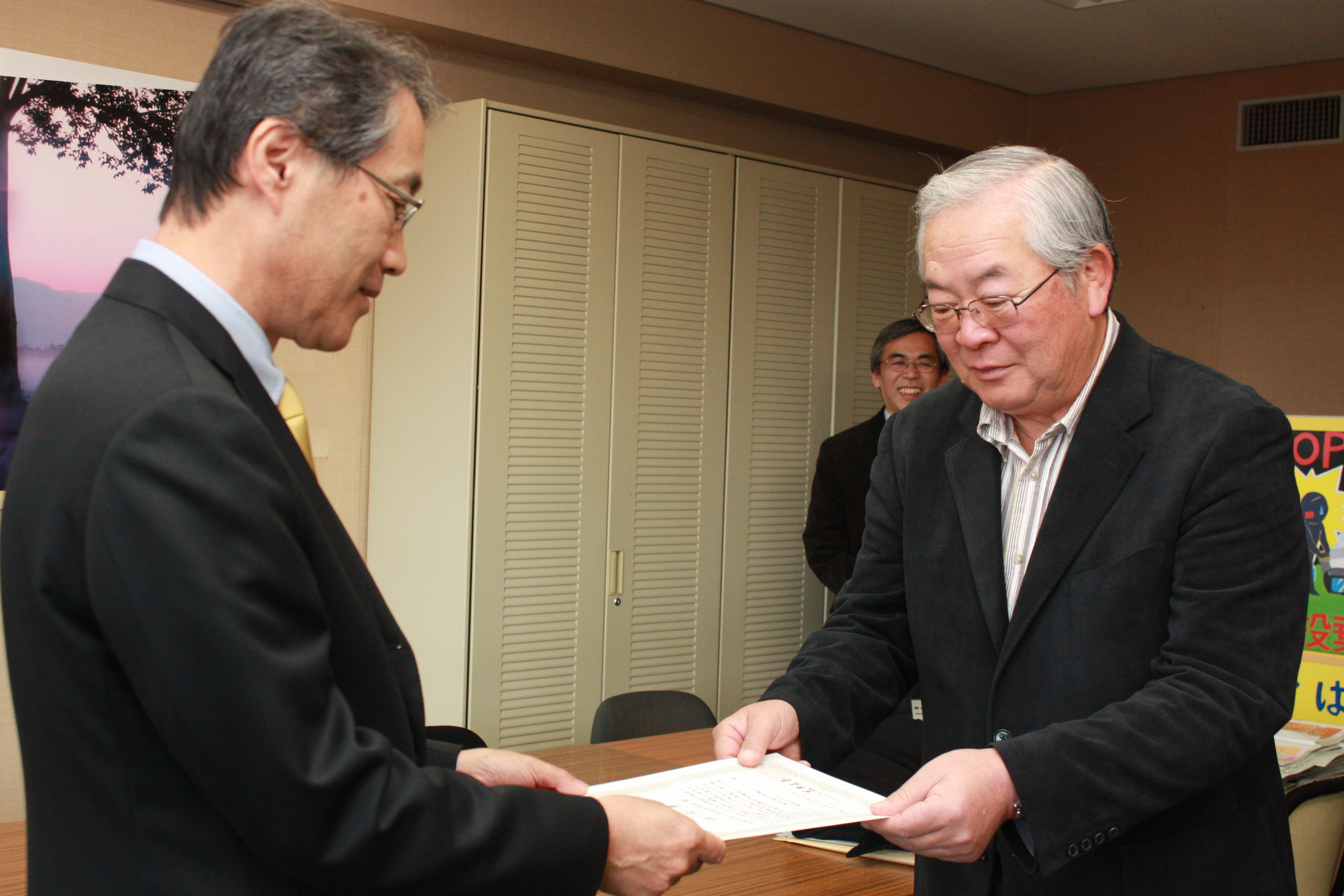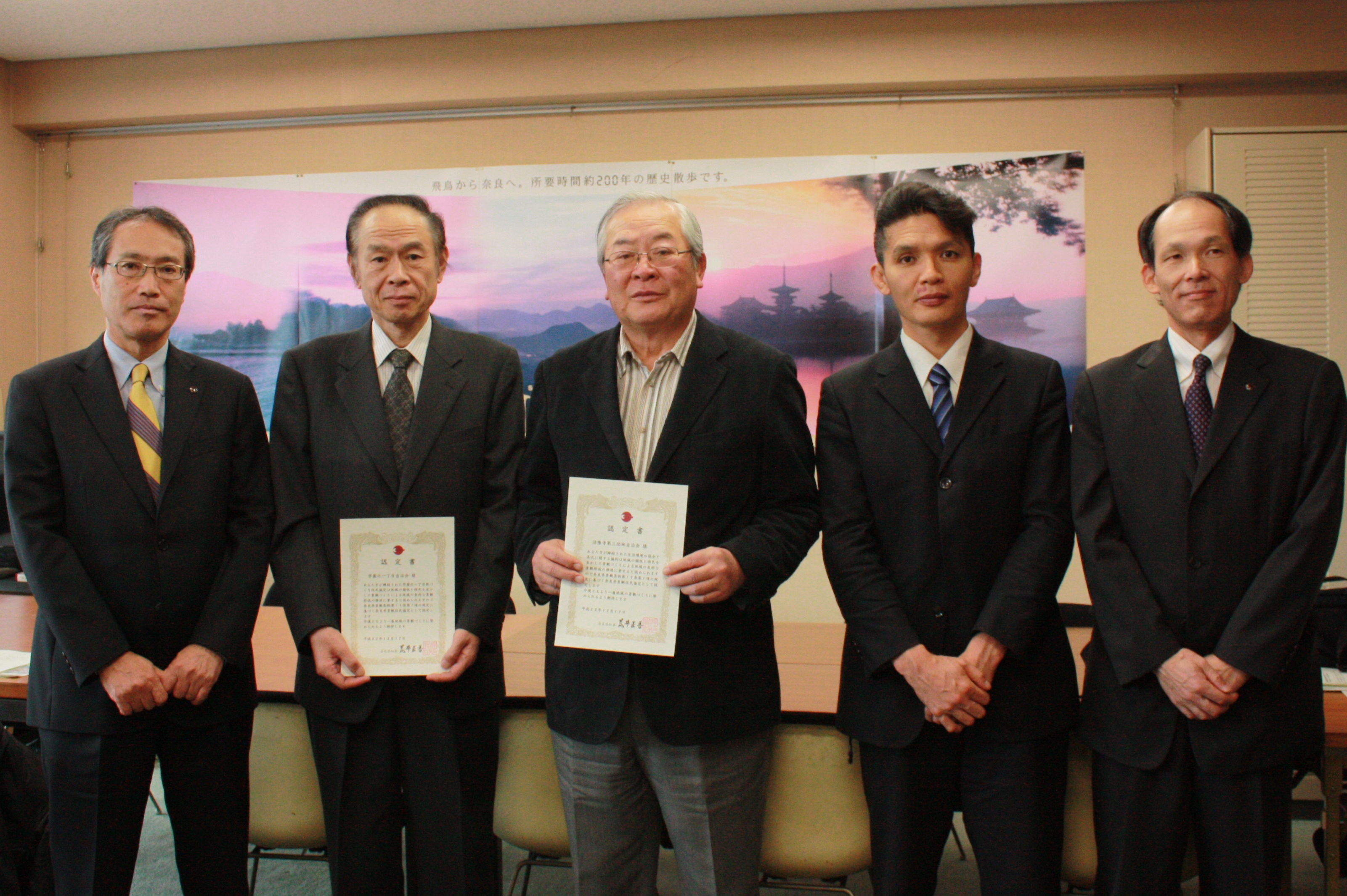 法隆寺第三団地自治会代表の方への認定書の交付