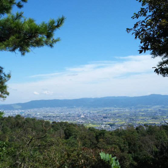 矢田丘陵は奈良県の北西を南北に走るなだらかな丘陵です。特に丘陵内に整備された矢田山遊びの森では、なだらかな遊歩道を進む途中、様々な場所から素晴らしい景色を楽しむことができます。