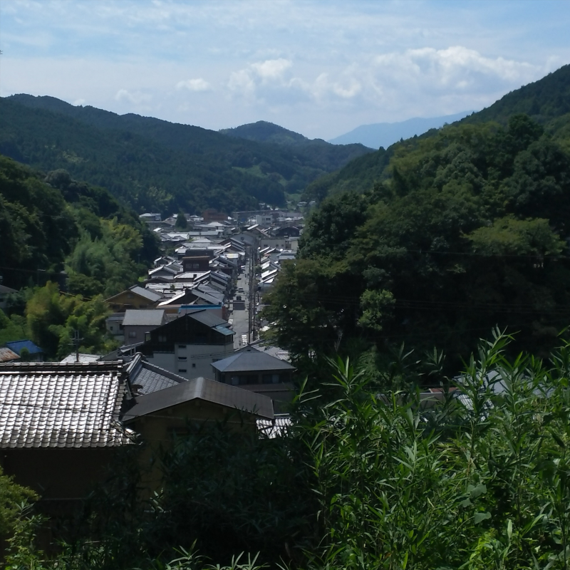 長谷寺門前町には、風情ある古い町並みが残ります。長谷寺門前町から輿喜天満神社の参道を登る途中にある輿喜寺跡からは、真っ直ぐに伸びる初瀬街道と、街道沿いの街並みを一望できます。また、輿喜天満神社参道の手前、天神橋からは、初瀬川越しに長谷寺を見上げることができます