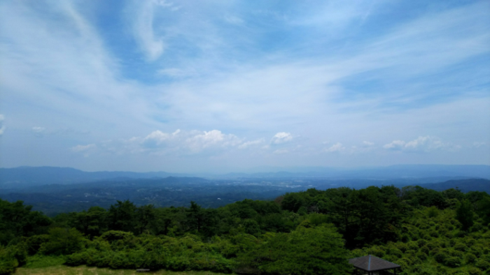山頂展望台からは、素晴らしい見晴らしを楽しめます。南方向には額井岳を初めとした山々を、東方向には伊賀市街などを望むことができます。