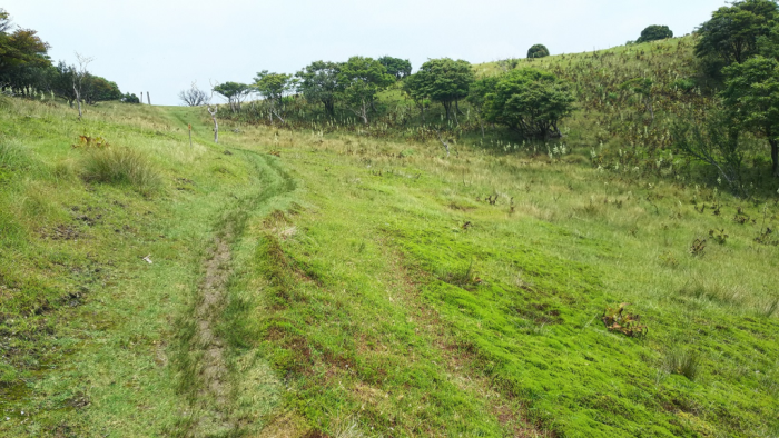 山頂から少し下った八丁平には一面の草原が広がっています。ここからは南に視界が開けていて、山頂とは違った景色を望めます。