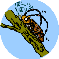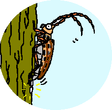 4 ヤニがとまり、元気のなくなった松にカミキリ虫が卵を産み付けます。