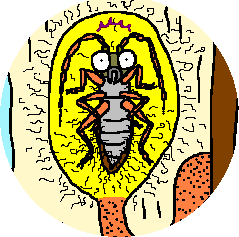 8 サナギが親の形になりかかると、線虫は部屋に入り、カミキリ虫の気門にとりつきます。