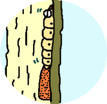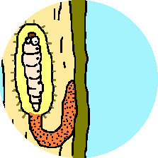 5 カミキリ虫の幼虫は、初めのうちは木の皮のすぐ下で生活します。
