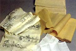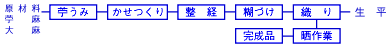 麻皮(青苧)を紡いで糸にし、手織りした麻布(生平)を真白く晒したものです。