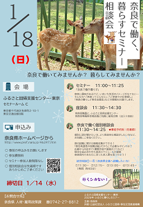 奈良で働く、暮らすセミナー・相談会 1月18日(日曜日)東京開催