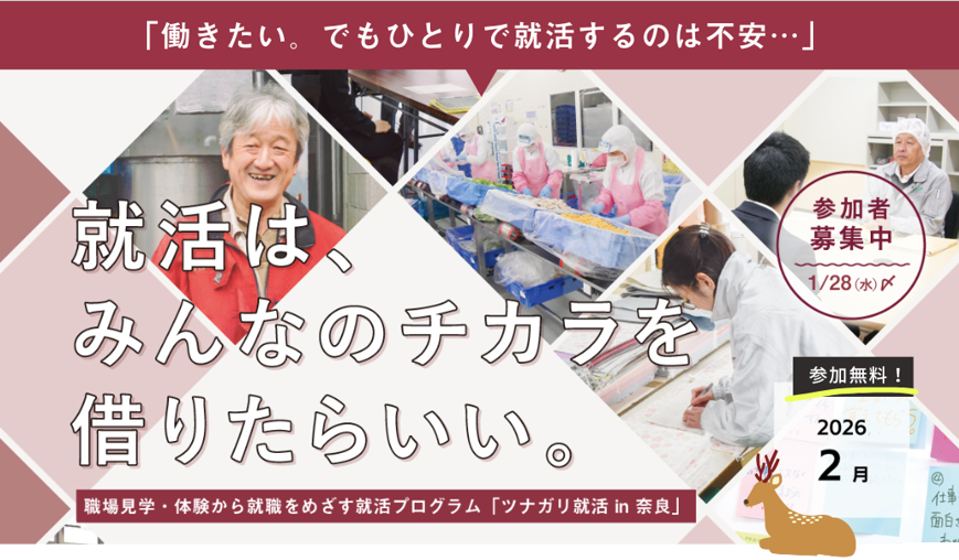 ツナガリ就活 in 奈良/短期集中・就活プログラム–28th(2026年2月4日(水曜日)開講)|働くこと no そうだんじょ(奈良若者サポートステーション 奈良サポステ)