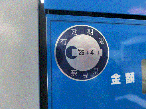 ガソリンスタンド等の燃料油メーターは、有効期限ステッカーで表示。