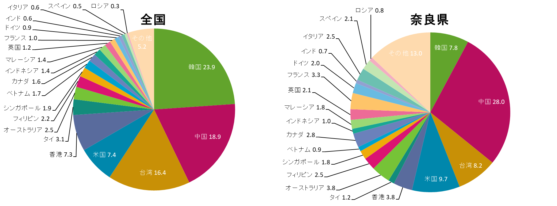 ただし、クルーズ客の奈良県訪問率が把握できないため、平成30年以降の奈良県訪問外客数は、一般客の数値をもとに推計しています。