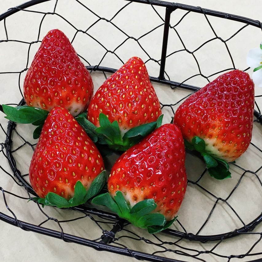「奈乃華」は奈良のイチゴとして有名な品種、「古都華」を元に、奈良県で新たに育成されました。表面(果皮)が硬くてしっかりしているので、暖かい季節になっても日持ちが良いのが特徴です。味は糖度と酸度のバランスが良好です。